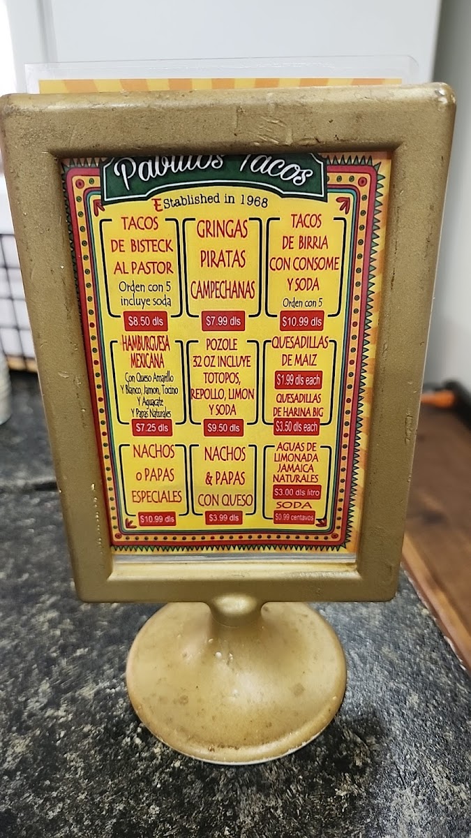 From a reviewer’s perspective, the menu at Pablitos Tacos feels focused and confidently executed, with each item highlighting classic Mexican flavors without unnecessary extras. The Tacos De Bistec Encebollado stand out for their hearty, savory profile, combining tender beef with caramelized onions that add depth and balance, making them a reliable choice for anyone craving something rich and filling. The Quesadillas offer a simpler yet satisfying option, emphasizing melted cheese and warm tortillas that work well as either a main dish or a complement to the taco selections. For those who appreciate bold, grilled flavors, the Tacos De Carne Asada deliver exactly what the name promises: well-seasoned beef with a smoky finish that reflects a traditional street-style approach. Adding variety to the menu, the Hamburguesa Mexicana bridges Mexican flavors with a familiar format, providing a hearty alternative for diners looking for something different while still staying true to the restaurant’s overall identity. Taken together, these highlighted dishes show a menu that prioritizes flavor, consistency, and straightforward comfort, making it easy to understand what Pablitos Tacos does best.